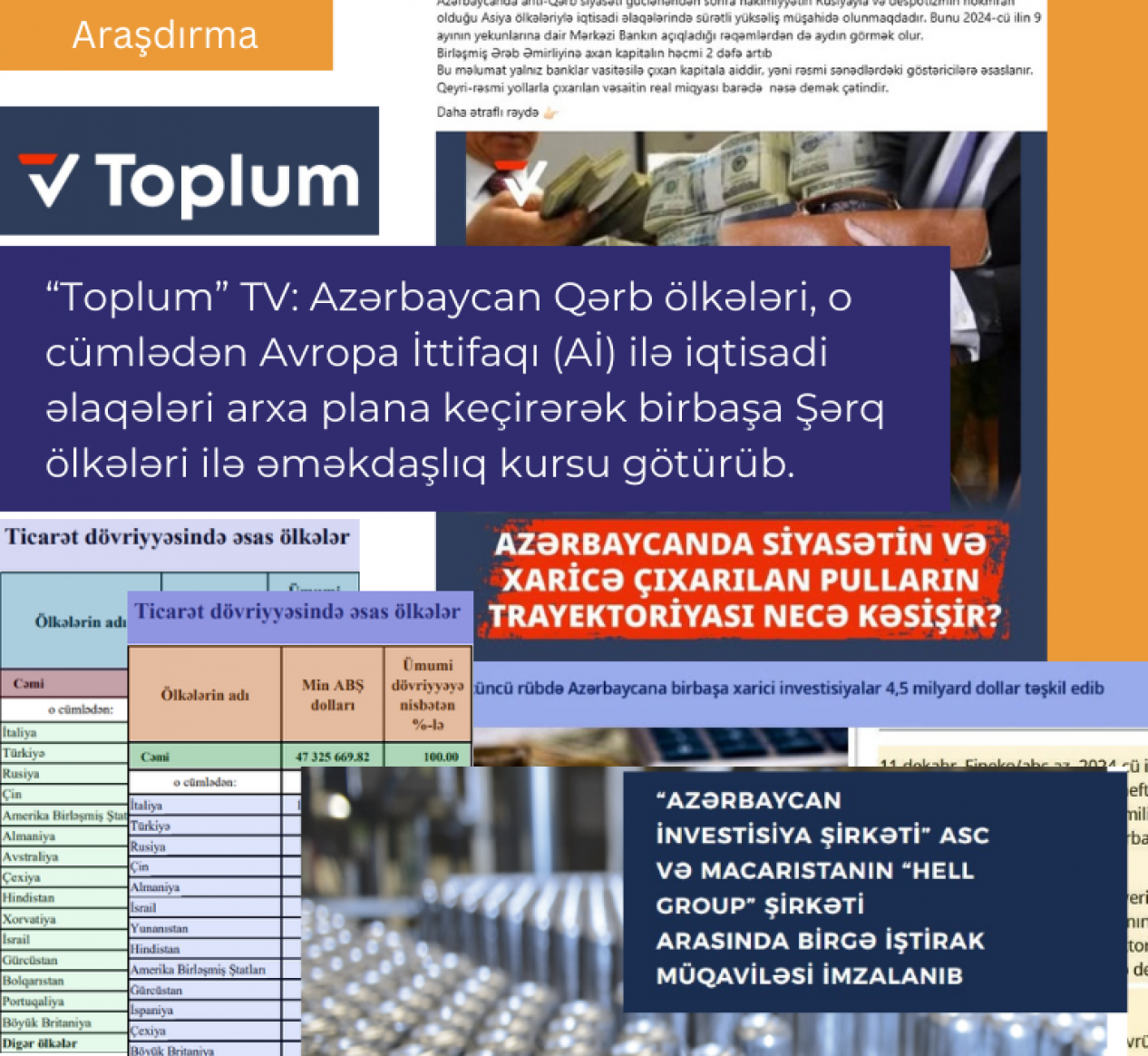 “Toplum” TV-nin təqdimatından belə təsəvvür yaranır ki, Azərbaycan Qərb ölkələri, o cümlədən Avropa İttifaqı (Aİ) ilə iqtisadi əlaqələri arxa plana keçirərək birbaşa Şərq ölkələri ilə əməkdaşlıq kursu götürüb.