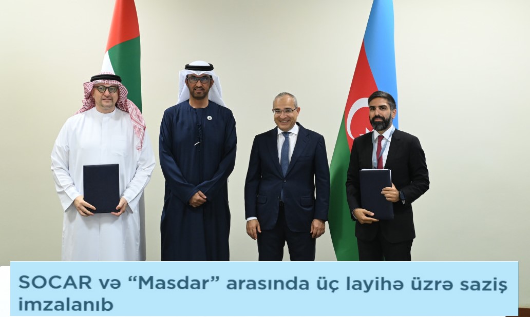 Bunun ardınca Azərbaycan Dövlət Neft Şirkəti (SOCAR) ilə Birləşmiş Ərəb Əmirliklərinin “Masdar” şirkəti arasında 2024-cü il iyunun 4-də 3 “yaşıl enerji” layihəsi üzrə Səhmdarlar Sazişləri imzalanıb. Sazişə əsasən, BƏƏ investorları ölkəmizdə 2 Günəş Elektrik Stansiyasını və 1 Külək enerjisi layihəsini icra edəcək. Həmin investisiya müqavilələrinin dəyəri 1 milyard dollardan çoxdur.