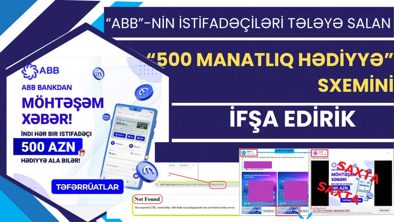 - Azərbaycan Beynəlxalq Bankının abreviaturasından istifadə edərək “Hər bir istifadəçi 500 AZN hədiyyə ala bilər” elanını yayan səhifə saxtadır.