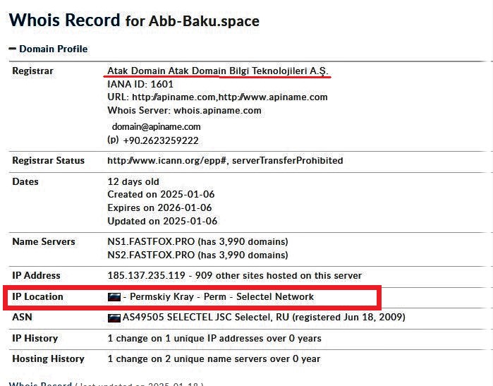 Digər axtarış sistemində isə saytın IP nömrəsinin Rusiyanın Perm vilayətinə məxsus olması haqda məlumat verilir: