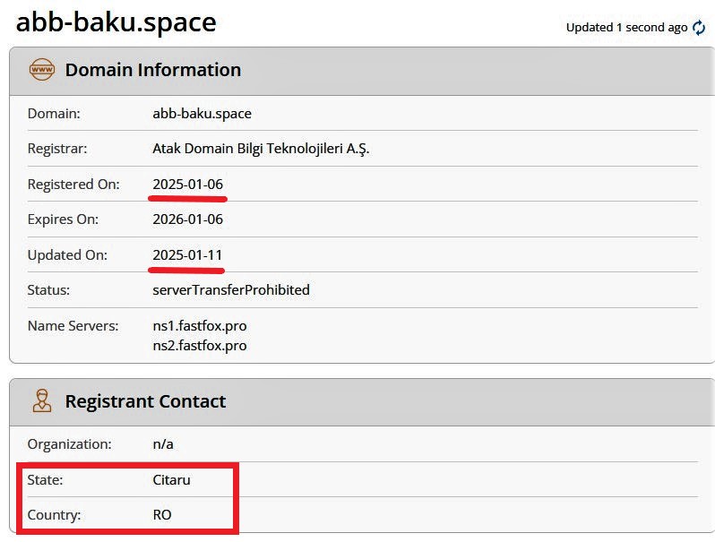 Bu qeydiyyatçının öz səhifəsində “Abb-Baku.space” domenini axtarışa verdikdə bu nəticələri alırıq: