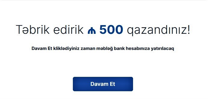 1. “500 manat” hədiyyə qazanacağımızı vəd edən cəlbedici elanda göstərilən “daha ətraflı” düyməsinə sıxdıqda ilk olaraq xoş mesajla rastlaşırıq və şirnikləndirmə davam edir: Kliklədiyiniz zaman məbləğ bank hesabınıza yatırılacaq.