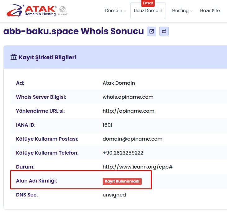 İP-axtarış nəticələrinə əsasən iki fərqli məlumatımız olmasına baxmayaraq yalnız bir server qeydiyyatçısının olduğu dəqiq göstərilib: “Atak Domain Bilgi Teknolojileri A.Ş”.