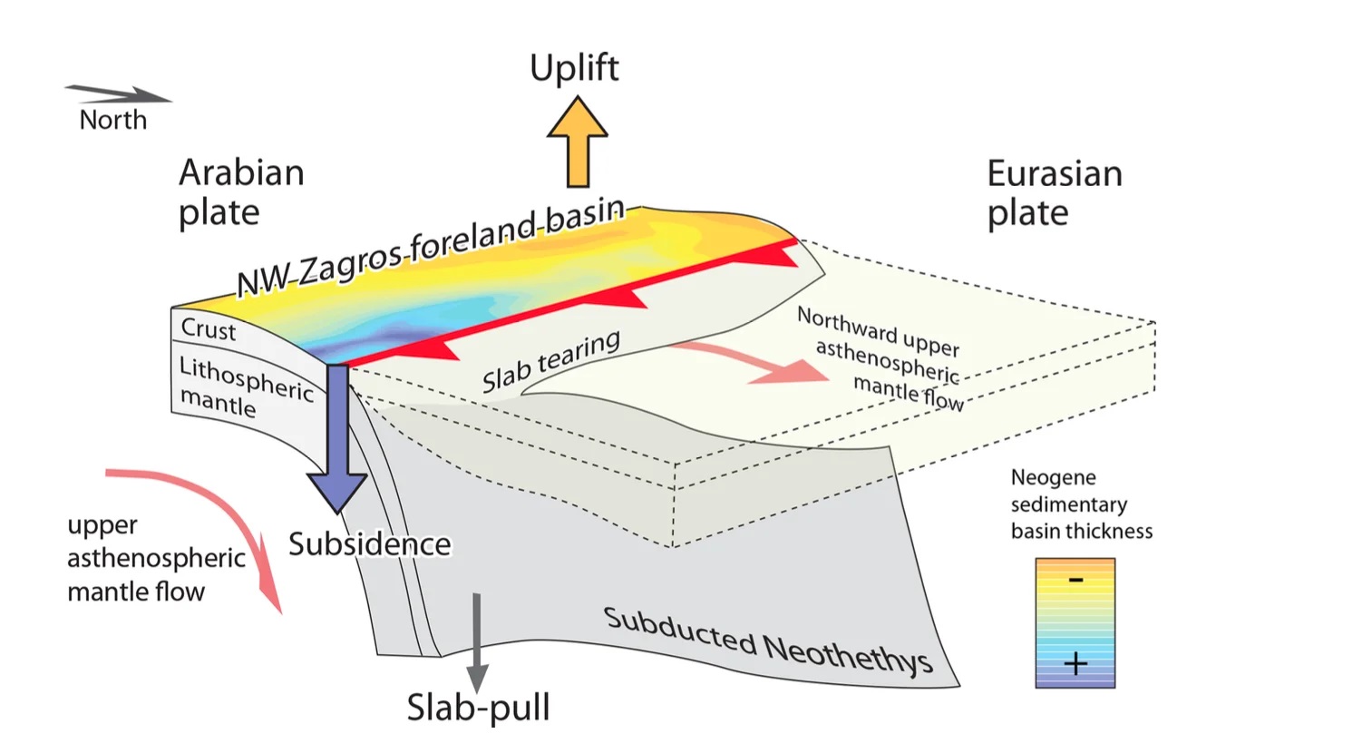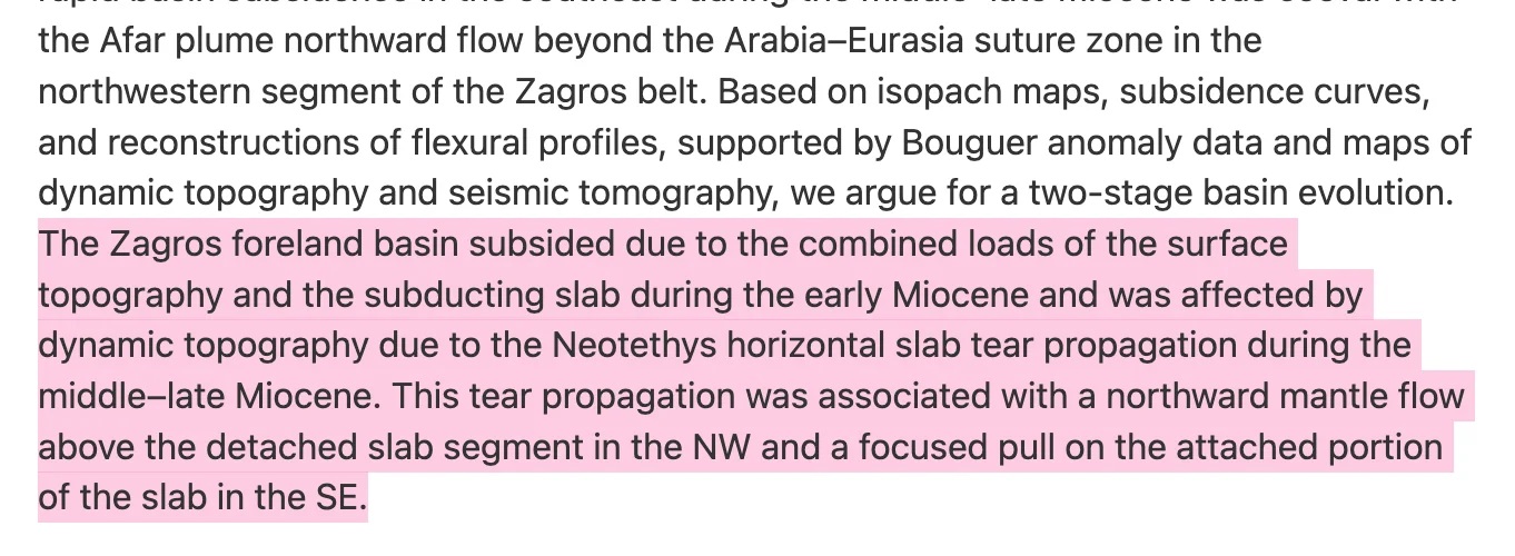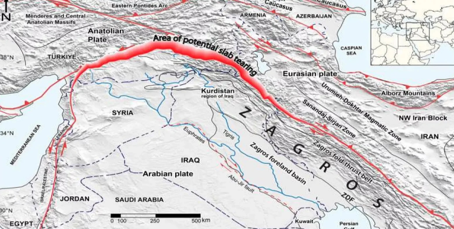 Zaqros dağlarının göstərdiyi qüvvə və Neotetis plitəsinin cırılması nəticəsində Türkiyənin cənub-şərqindən İranın şimal-qərbinə qədər görünən “plitənin cırılması ” (məqalədə deyildiyi kimi) əmələ gəlmişdir.