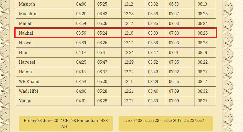 Oman Dini İşlər Nazirliyinin 2017-ci il üçün hazırladığı namaz cədvəlində Vakan kəndinin bağlı olduğu Nakhal qubernatorluğu üçün müəyyən edilmiş vaxtlar da sübut mənbəyi sayıla bilər.