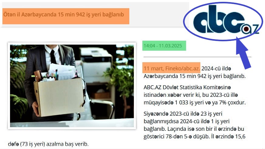 Ötən həftə bir çox sayt və sosial media səhifələri Azərbaycanda son bir ildə bağlanmış iş yerlərinin sayında artımların baş verməsi haqda məlumat yayıblar. İlk olaraq fed.az Dövlət Statistika Komitəsinə istinadən məlumat yayıb ki, iş yerlərinin bağlanması halı 2023-cü illə müqayisədə 1 033 iş yeri və ya 7% çoxdur.