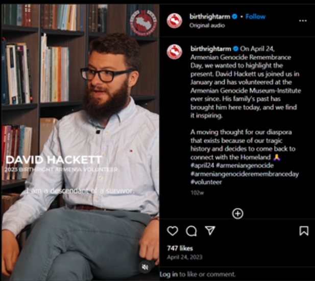 Haketin Ermənistana ilk səfəri 2023-cü ildə “Birthright Armenia” proqramı çərçivəsində baş tutub. Qeyd edək ki, bu proqramın əsas məqsədi diaspor ermənilərini “vətən”lə tanış etməkdir. Əslində bu Proqram erməni lobbisinin “yumşaq güc” vasitələrindən biridir. Proqramın təsisçisi Edel Hovnanian, erməni lobbisinin təkcə ABŞ-də deyil, bütün dünyada ən böyük təşkilatı olan “Amerika Ermənilərinin Milli Assambleyası” (ANCA) ilə sıx bağlılığı olan bir xeyriyyəçidir.
