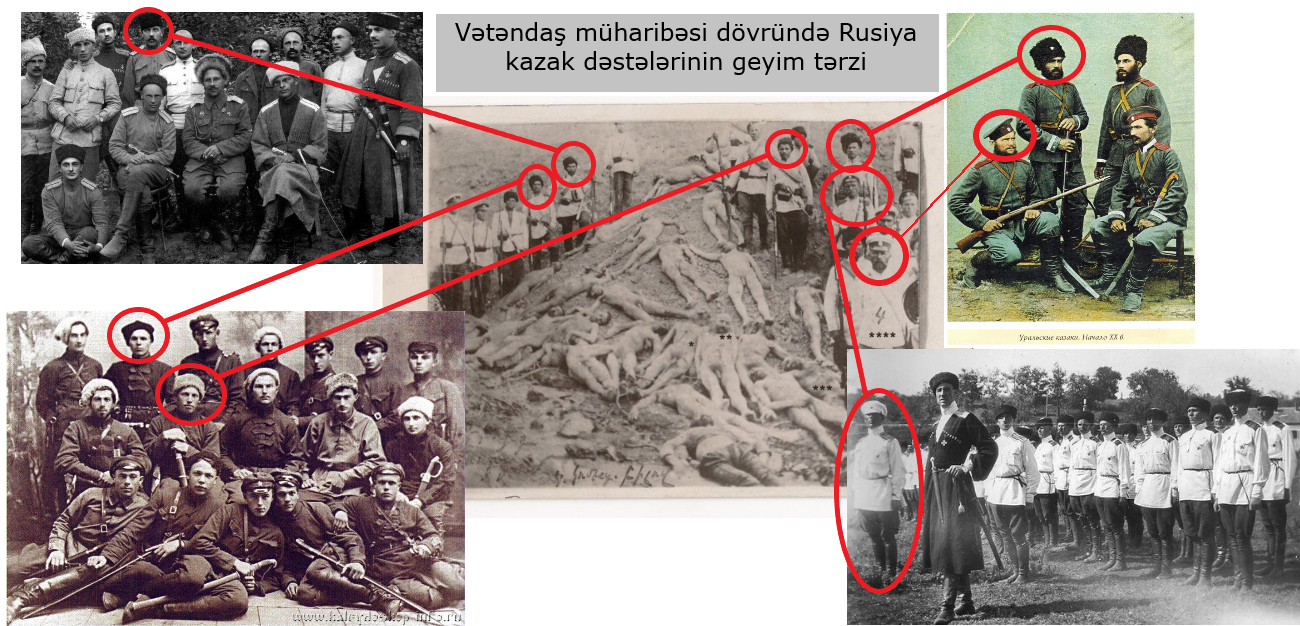 Əslində isə bu fotonun və fotoda görünən hərbçilərin nə Osmanlı Türkiyəsinə, nə də orada yaşayan ermənilərə heç bir aidiyyatı yoxdur. Fotoda əks olunan hərbi geyimlilər Vətəndaş müharibəsi dövründə Rusiyada kazak dəstələrinin döyüşçüləridilər. (mənbə)