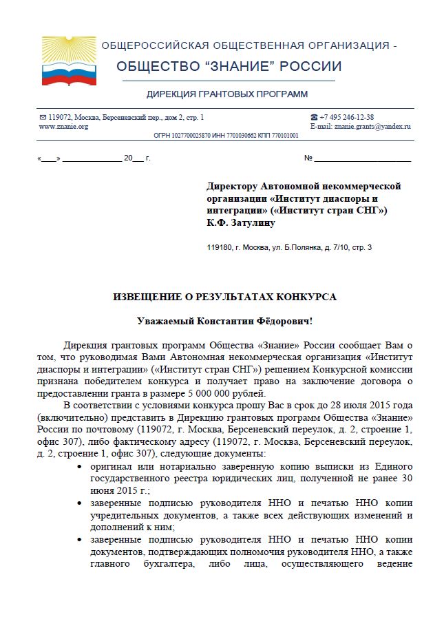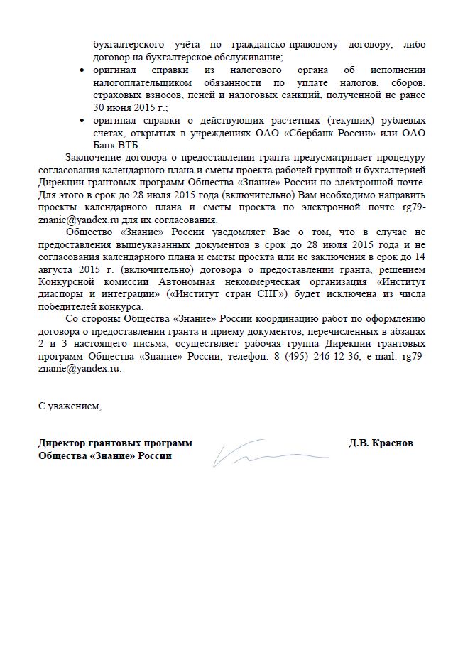 Əldə edilən digər sənəddən görünür ki, "Krım xalqının ən yeni tarixi" layihəsinin həyata keçirilməsi məsələləri ilə bağlı Zatulin Prezident Administrasiyasının İctimai Layihələr üzrə rəhbəri P.S. Zenkoviçə qrant verən - "Bilik" cəmiyyəti ilə aralarında yaranan problemlərin həlli üçün müraciət edib. Belə anlaşırlır ki, Zatulinin İnstitutu layihəni vaxtında təqdim etməyib və smeta üzrə qalan 600 min rublun geri qaytarılması tələb olunur. Demək, layihənin əsas hissəsi, yəni 5 milyon rublun 4,4 milyon rublu Zatulin tərəfindən müxtəlif yollarla, müxtəlif layihələrlə silinib.
