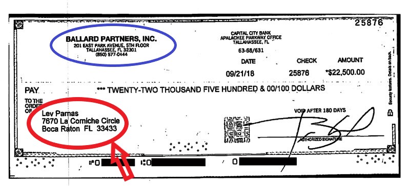 Jurnalistlərin əldə etdiyi məlumatlar göstərir ki, Ballardın firması sövdələşmələri təşkil etməyə dəstək olduğu üçün bir ildən bir az artıq müddət sonra (2018-ci ildə) Parnasa 22,500 dollarlıq iki ödəniş edib.