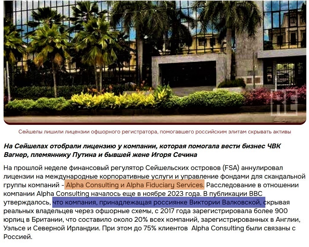 Araşdırma zamanı onu da müəyyən etdik ki, “Alpha Consulting” adlı şirkət Rusiya vətəndaşı Viktoriya Valkovskaya tərəfindən idarə olunub. (repost.news