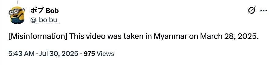 Məsələn, 30 iyul 2025-cü il tarixində Rusiyanın Kamçatka vilayətində baş verən zəlzələ ilə bağlı Mustafa Doğanın paylaşdığı videonun saxta olduğunu görən yaponiyalı Bob adlı istifadəçi bu videonun 28 mart 2025-ci ildə Myammarda baş verən zəlzələdə çəkildiyini yazmışdı.