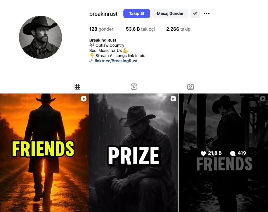 “Breaking Rust”-da olduğu kimi, yalnız Süni İntellekt tərəfindən yaradılan vizuallarla dolu bir “İnstaqram” hesabından ehtiyatlı olun. Əsl sənətçilər adətən pərdə arxasından, gündəlik həyatdan və ya səhnə çıxışlarından fotolar paylaşırlar.