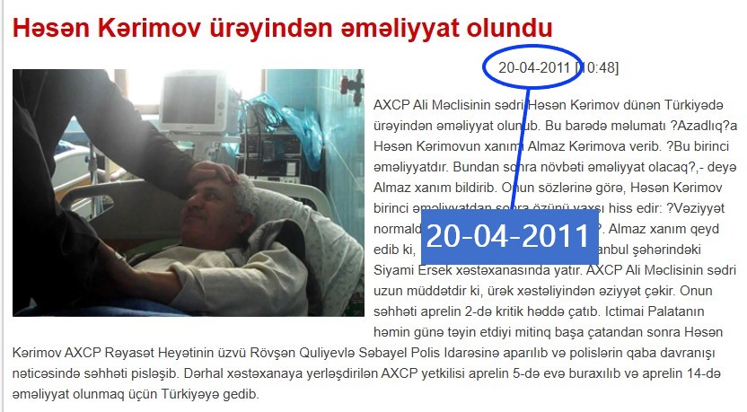 Arxivdən Həsən Kərimovun ürək əməliyyatı üçün Türkiyəyə səfərlərinə baxdıqda bəlli olur ki, bu şəxs iki dəfə Türkiyədə səfərdə olub. İlk səfər 2011-ci ilin aprel ayında, ikinci səfər isə 20 oktyabr 2013-cü ildə olub. Göründüyü kimi, o, qəsdən 2010-cu il versiyasını ortaya atır ki, 2013-cü ildə prezident seçkiləri ərəfəsində “Milli Şura”nın “Milyarderlər İttifaqı” ilə əlaqələrini ört-basdır edə bilsin.