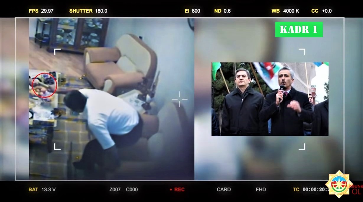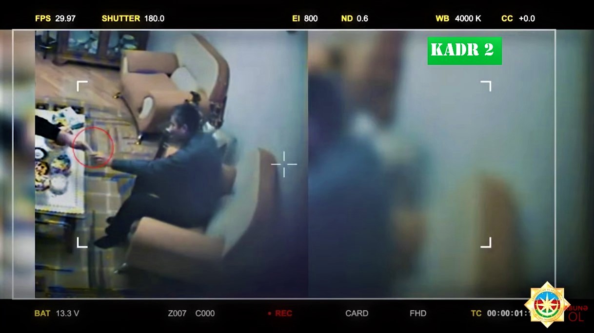 Amma təqdim edilən bu kadrda bahalı qabların yığıldığı dolab görünür. Böyük ehtimal ki, bu mənzildir. Lakin necə bir mənzil?! Adətən xarici kəşfiyyat orqanlarının istifadə etdiyi konspirativ mənzillərdən biridir. Görünür, məhz bu səbəbdən həmin mənzil Azərbaycan xüsusi xidmət orqanlarının diqqətinə düşüb.