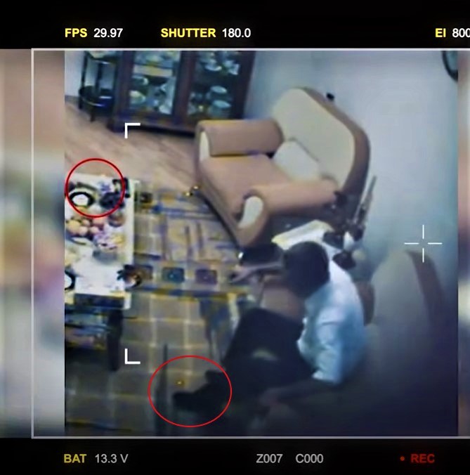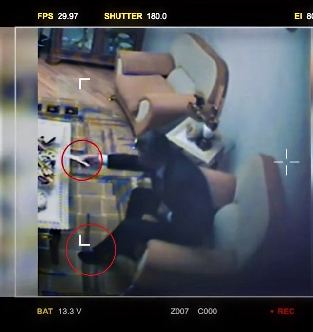 Bundan başqa, ayrı-ayrı vaxtlarda çəkilən hər üç kadrda F.Qəhrəmanlının ayaqqabıda deyil, corabda olduğunu görürük. Bu da məlumdur ki, adətən ofislərdə, hətta mənzil tipli ofislərdə heç kim corabda gəzmir. Bununla da buranın ofis deyil, F.Qəhrəmanlının yaxşı tanıdığı və özünü rahat hiss etdiyi konspirativ mənzil olduğu sübut edilir.