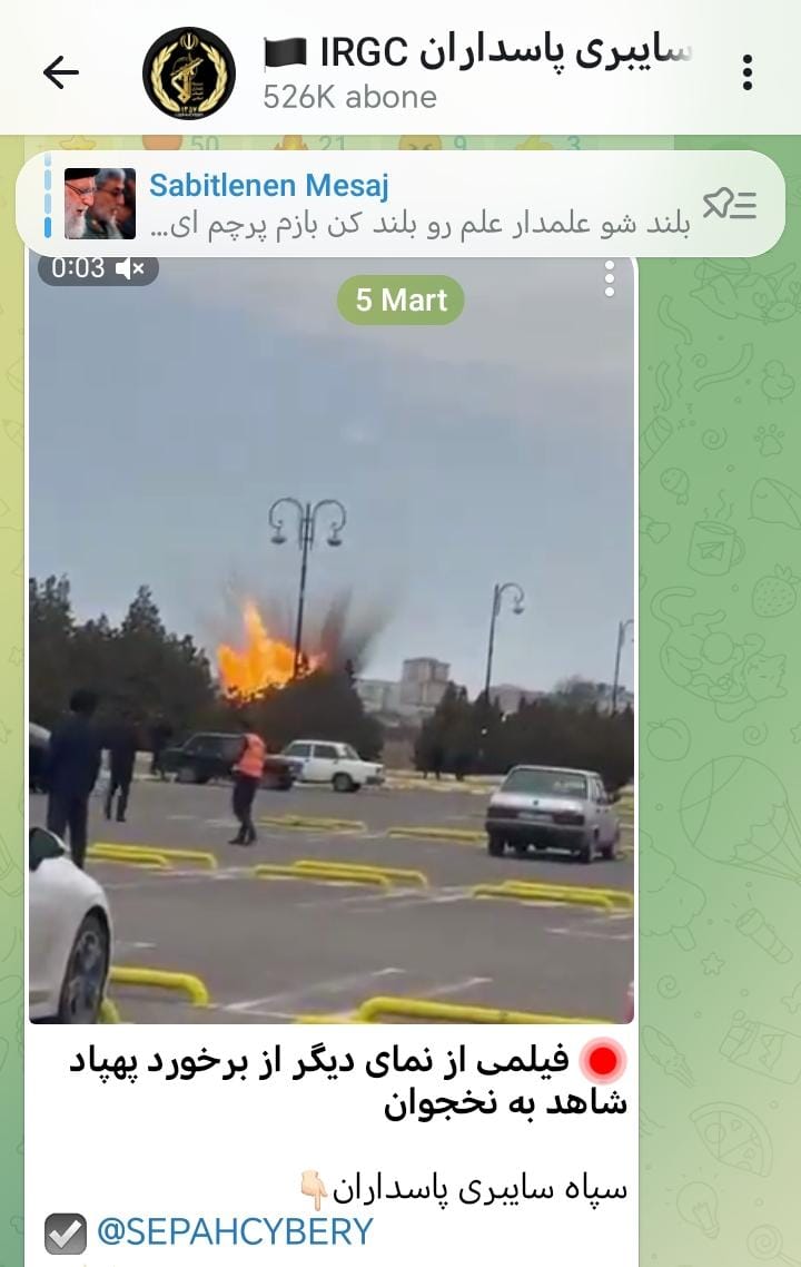 Hücumu İranın hərbi strukturları da etiraf edib və SEPAH-a məxsus “SEPAH-Pasdaran” teleqram kanalında bu barədə xəbərlər yayılıb.