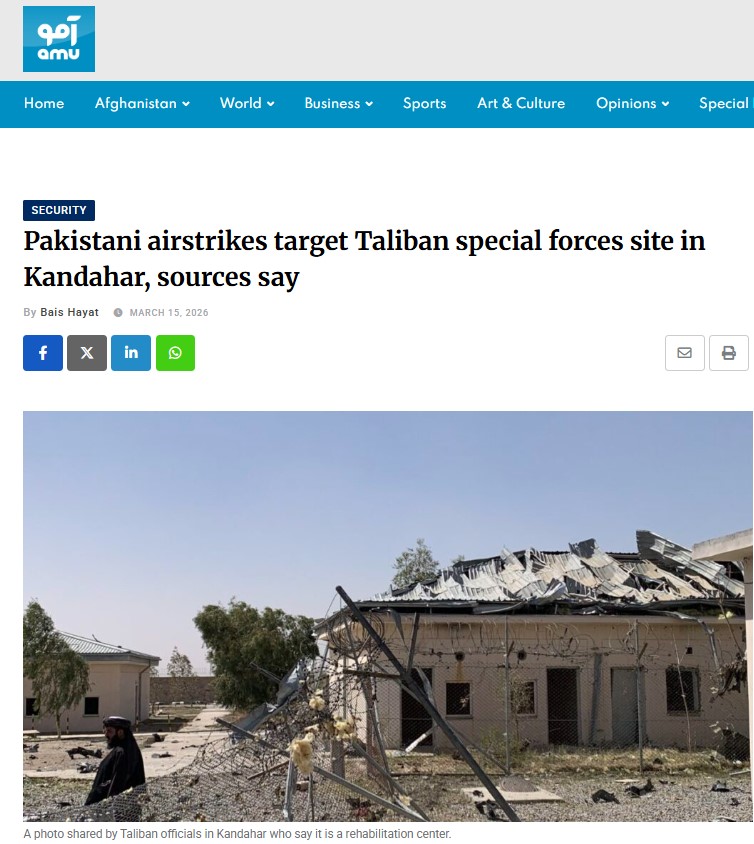 Mühacirətdə yaşayan əfqanların yaratdığı "AmuTV" portalı da məsələ ilə bağlı material yayımlayıb. Orda da "mənbələr" sözündən istifadə olunub və mənbənin kimliyi qeyd edilməyib. Xəbərdə Pakistanın hava hücumlarının Əfqanıstanın cənubunda Talibanın ali lideri Heybətullah Axundzadə ilə əlaqəli Taliban xüsusi təyinatlı qüvvələrin yerləşdiyi ərazilərin hədəf alındığı qeyd olunub. Zərbələrin Qəndəharın 9-cu rayonundakı Axundzadəyə sadiq döyüşçülərin təlim keçdiyi bölməyə dəydiyinin vurğulandığı xəbərdə qeyd olunur ki, zərbə endirilən obyekt Axundzadənin komandanlığındaki ən etibarlı bölmələrdən biridir. Amma iddianın Taliban sözçüsü Zəbihullah Mücahid tərəfindən təkzib edildiyi də xəbərin sonuna əlavə olunub.