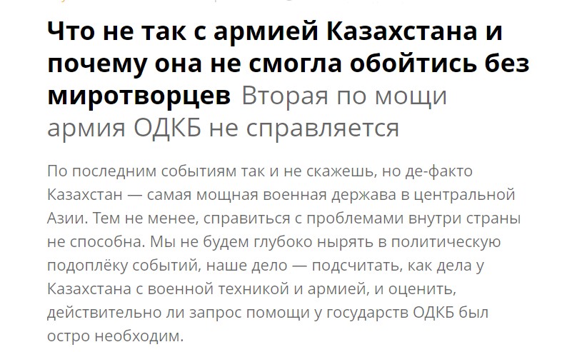 Well, let’s say that the think tank conducted the rating research before the events in Kazakhstan. Therefore, a mistake was made about the army of this country.