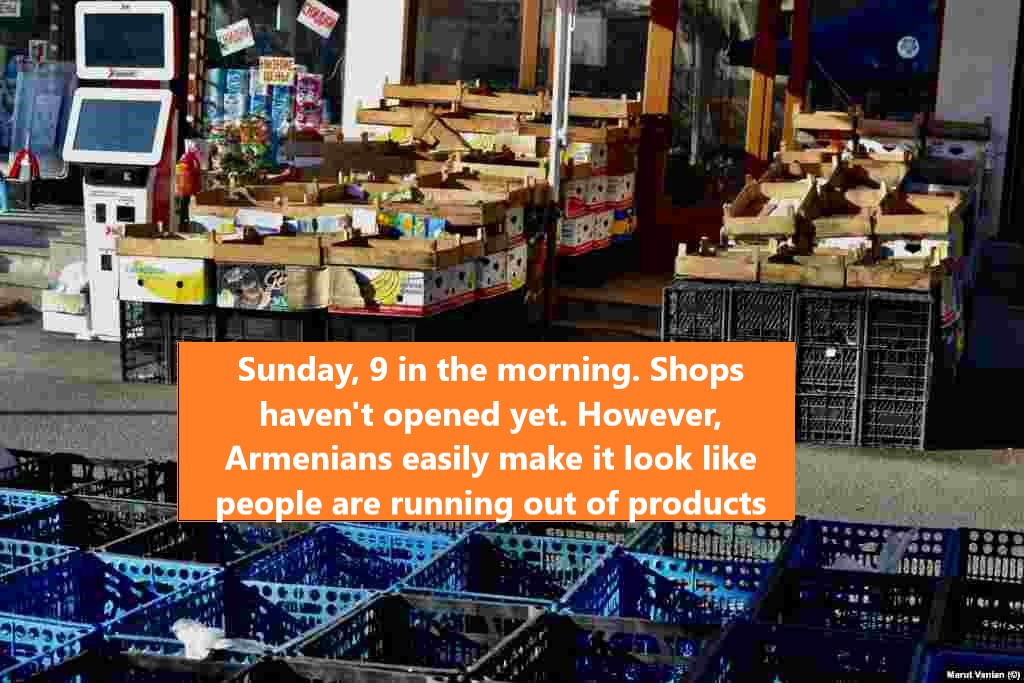 Fact 3. A propagandist named Arman Tatoyan once again spread false information about "120,000 Armenians being blockaded as a result of Azerbaijan's policy" and added photos of Khankandi stores with empty counters. One of those photos was shared in a relatively large size by a user named Kevork Oskanian. Watch out for those screenshots.