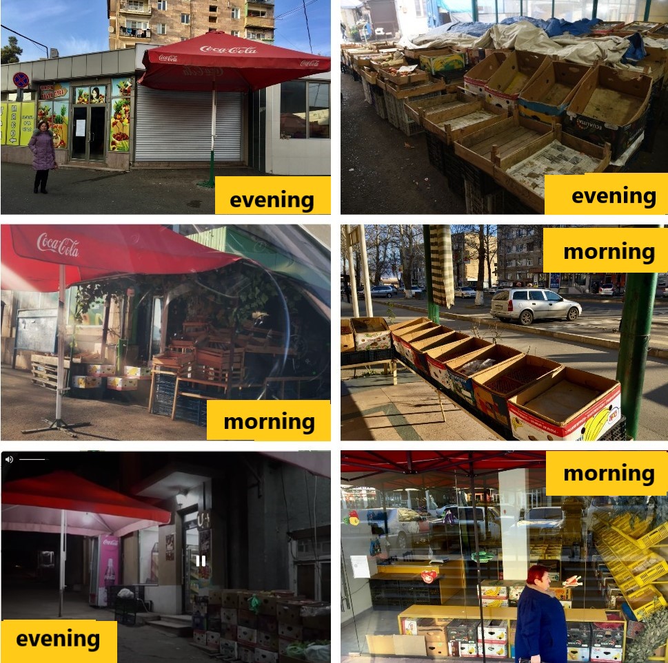 Fact 10. These photos of empty counters show the condition of stores at certain times of the day. Some of the pictures appear to be taken in the morning (the vendors have not yet started work) and some in the evening (the vendors have finished their work). All photos are determined based on sunlight, lighting of shops, structure of shadows and the angle of the sun.