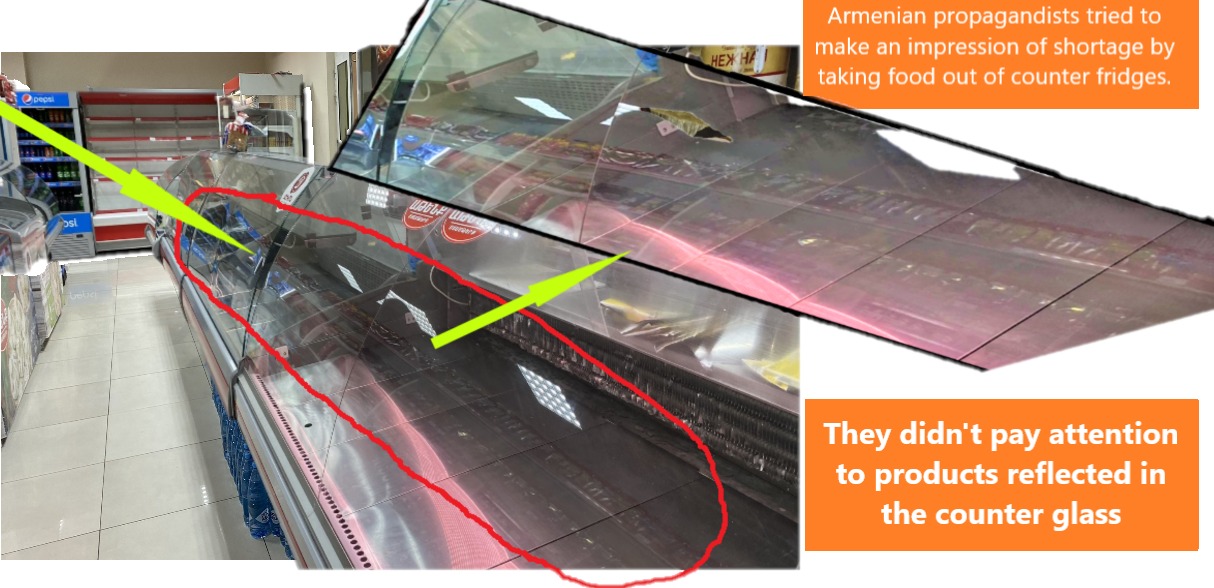 Fact 1. Let's pay attention to the food assortment and the number of customers of this "SBS market" store located on Hekimyan street 11 in Khankandi. If there is mass starvation in a city, if there is no food, why is there no queue in this store, and the counters are full of food products? Maybe the seller is "a Turk", so the Armenians boycotted this place?