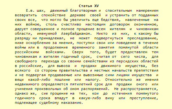 There is absence of any mention of the Armenians in this document, which consists of 11 points, although some Armenian politicians and scientists, contrary to historical facts, are trying to present the annexation of Karabakh to Russia as part of the last "Armenian province."