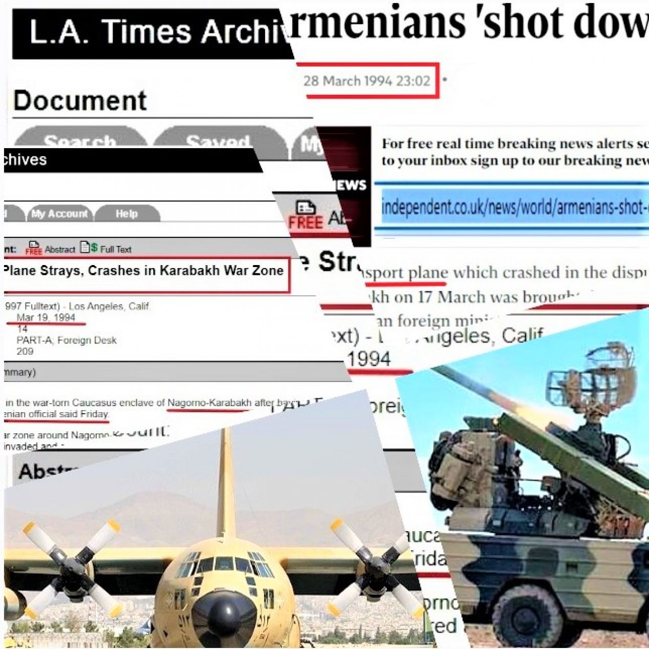 An article was published in the Armenian media under the title "The crash of the Iranian C-130 plane". In that information, it is mentioned that the Iranian "Lockheed C-130 Hercules" plane was shot down by the armed forces of Armenia. On March 17, 1994, a "C-130" passenger plane was shot down in the Aygistan settlement, located 10 kilometers from Khankandi, better known as Ballica. Family members of employees of the Iranian embassy in Moscow were on the plane. (Human Rights Watch/Helsinki, Christopher Panico, Jemera Rone. Azerbaijan: Seven years of conflict in Nagorno-Karabakh. Human Rights Watch, 1994. ISBN 1564321428, 9781564321428, p. 108)