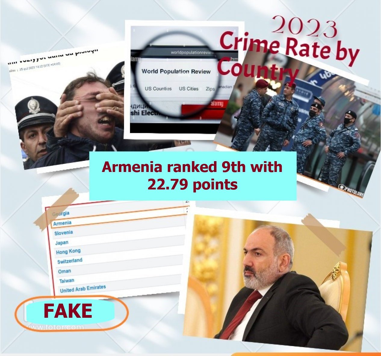 - If you pay attention to the figures released by the law enforcement and prosecutor's offices of Armenia, public organizations and registered crime statistics, it is possible to see that the Crime Rate by Country 2023 report is based on forgery and that Pashinyan is also lying.