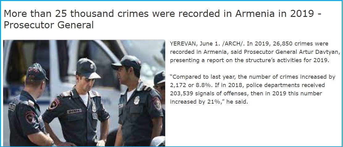 Last year in Armenia, in addition to cases of harming the health of the population, domestic violence, identity, public order and security, theft, etc. the number of crimes has also increased. This expresses the picture of the unstable social situation in the country. (link)