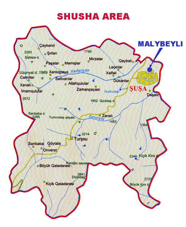 This village was 14 km away from the city of Shusha. The name of the village literally translates as belonging to Mali Bey. The name of this village appears in the 1912 Caucasian calendar. This Calendar reports that the population of the village is Tatar (Azerbaijani), 1060 people live in the village.