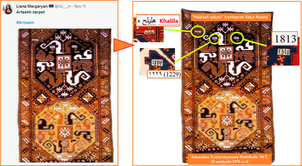 As a result of the study, it turned out that only after the occupation in Armenian sources, as well as at antique auctions and in online sales centers selling carpets, carpets identical to the “Malybeyli” carpet began to appear under the name “Khndzoresk”.