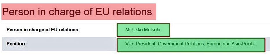 Open sources put Ukko Metsola as official lobbyist for the “Royal Caribbean Group.” According to “Transparency Register”, his name is listed under the position in charge of EU relations: