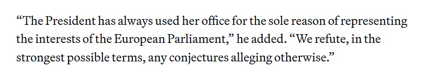 Despite the fact that Madame President’s statements align with the requests made by her husband in the respective sector of the industry, her spokesperson said she was simply stating the broad position of the Parliament as its members had voted and had done nothing out of the ordinary.