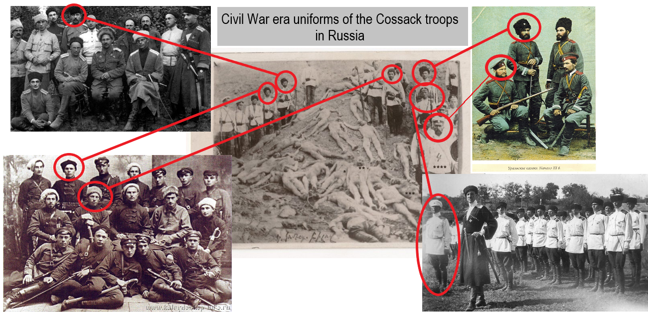 However, this photo and the soldiers depicted in it have no connection to Ottoman Turkey or its Armenian population. The uniformed men shown are Cossack fighters from Russia, taken during the period of the Civil War. (source)