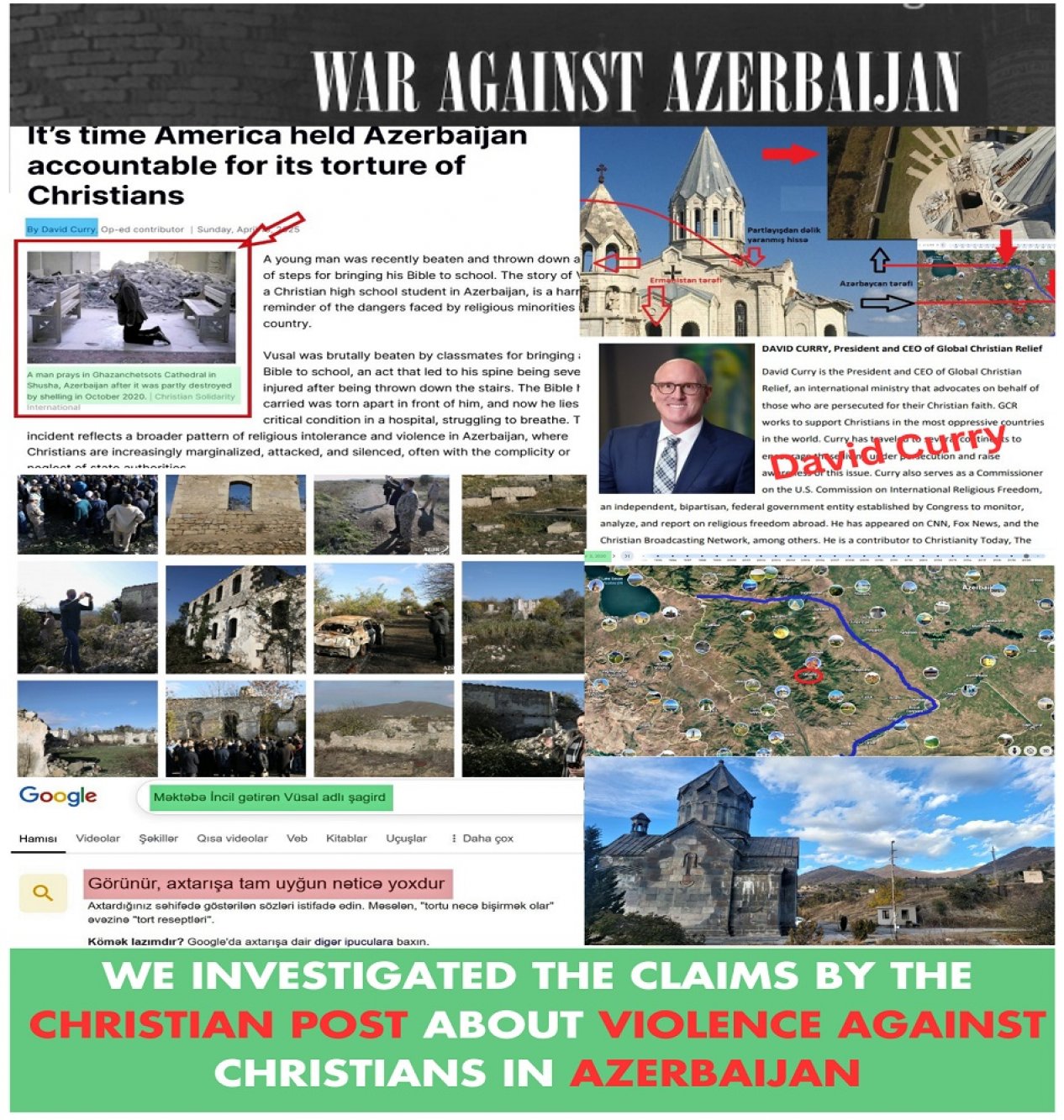 It becomes clear that the information presented in the article written by David Curry in The Christian Post is not based on his own research and analysis, but rather relies on sources close to the Armenian lobby, such as Caucasus Heritage Watch and Freedom House, as well as ‘evidence’ from Horizonweekly and Sputnik Armenia.