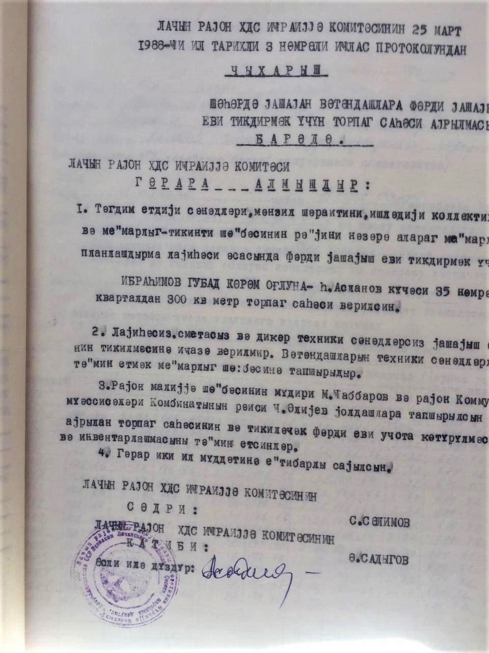 For context, the Armed Forces of Armenia occupied Lachin District - an ancient Azerbaijani city - on May 18, 1992, just ten days after the occupation of Shusha. They killed civilians and carried out ethnic cleansing. In 1998, Armenians dismantled the house belonging to Lachin resident Qubad Ibrahimov, who had been expelled from his home, and used its materials to build the so-called church. Attached photo evidence includes copies of official documents issued to Gubad Ibrahimov by Azerbaijani local authorities in 1988, as well as photos confirming the construction activities carried out by Armenians.