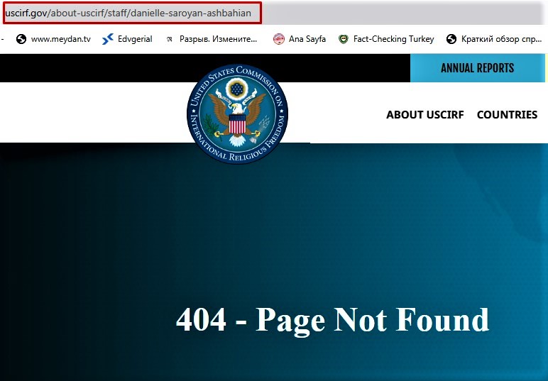 However, there is an important point we believe should be noted. The section of the report pertaining to Azerbaijan was prepared by Danielle Saroyan Ashbahian, Chief of Public and Congressional Relations at the U.S. Commission on International Religious Freedom. She has also worked at the U.S. Consulates in Los Angeles and San Francisco, as well as in Lebanon.