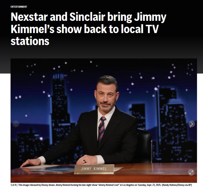Users shared this matter in an effort to draw parallels with ABC's Sept. 17 announcement about suspending comedian Jimmy Kimmel's late-night TV show "Jimmy Kimmel Live!," as well as with CBS' and Paramount Global's abrupt July 17 cancellation of comedian Stephen Colbert's "The Late Show with Stephen Colbert" — a program ending its run in May 2026. (ABC reinstated Kimmel's show within a week of announcing the suspension, though broadcast companies Nexstar Media Group and Sinclair Broadcast Group continued preempting the show on their stations. Sinclair ended the blackout on Sept. 26, 2025.)