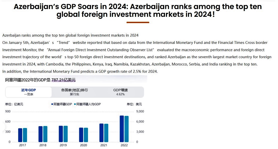 A positive outlook is also noted regarding Azerbaijan’s economic prospects. The United Nations considers that, thanks to the government’s focus on diversification and investment, the country’s economic outlook remains favorable. [Reference]