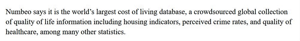 Finally, some context is necessary regarding the misleading rankings published by Numbeo.