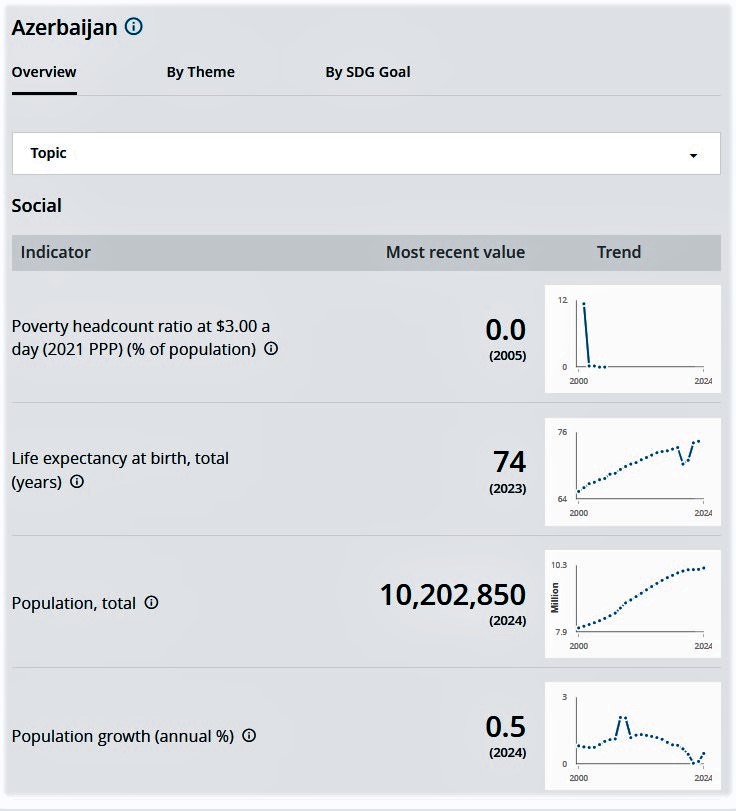 Each of these countries lags behind Azerbaijan in terms of GDP, average monthly wages, average and minimum pensions, per capita national income, external debt, per capita social and healthcare expenditures, benefits and allowances, per capita education spending, and other indicators. This can be verified by accessing the World Bank (WB) database, selecting any country, and cross-checking using real figures and indicators. For example, the database provides comprehensive and detailed information on Azerbaijan’s socio-economic development indicators.