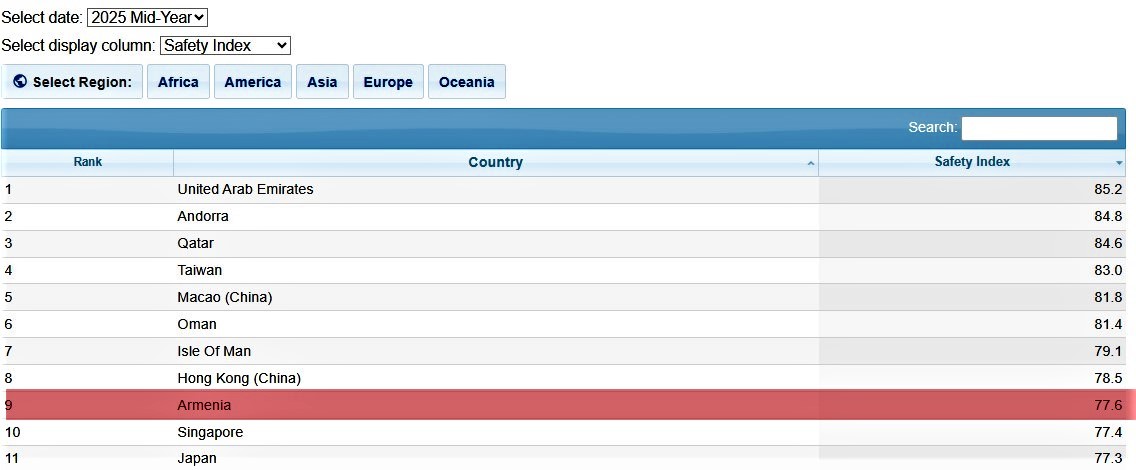 It is particularly striking that Armenia outranks many countries generally considered stable and secure, including Japan, in this ranking.