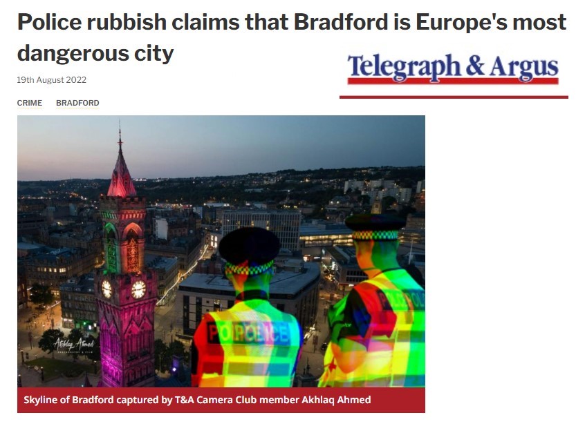 A similar case occurred with Bradford, United Kingdom. In 2022, Numbeo’s ranking of the “most dangerous crime-ridden cities” placed Bradford in top position, sparking widespread debate and going viral on social media.