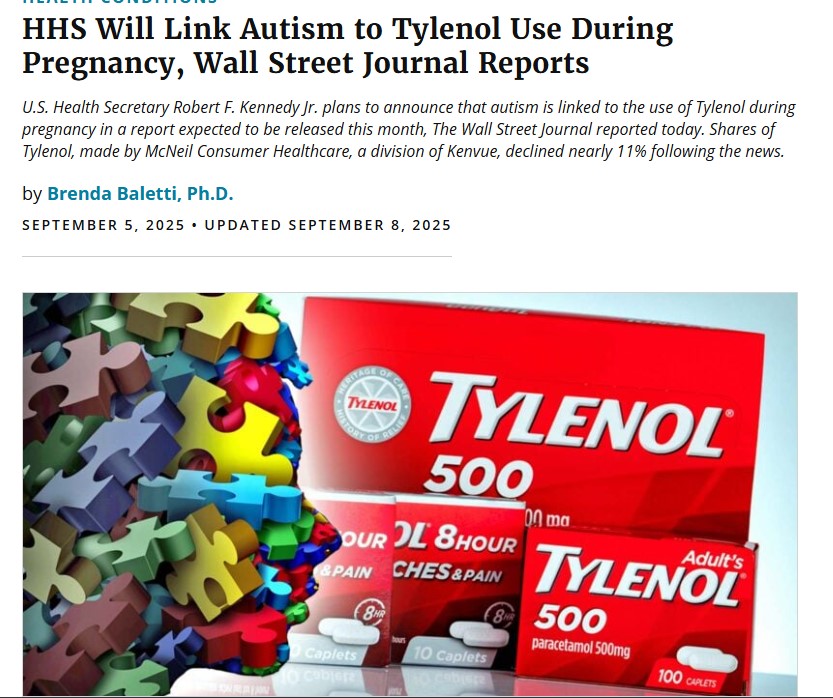 On Sept. 5, the Wall Street Journal reported that Kennedy would suggest a connection between autism and use of Tylenol, or acetaminophen, during pregnancy, based on conversations about an expected HHS autism report with “people familiar with the matter.” As we will discuss below, Tylenol hasn’t been shown to cause autism, and some experts told us that the best current evidence points away from this conclusion. Failing to treat fever and pain in pregnancy can be dangerous for the mother and infant.