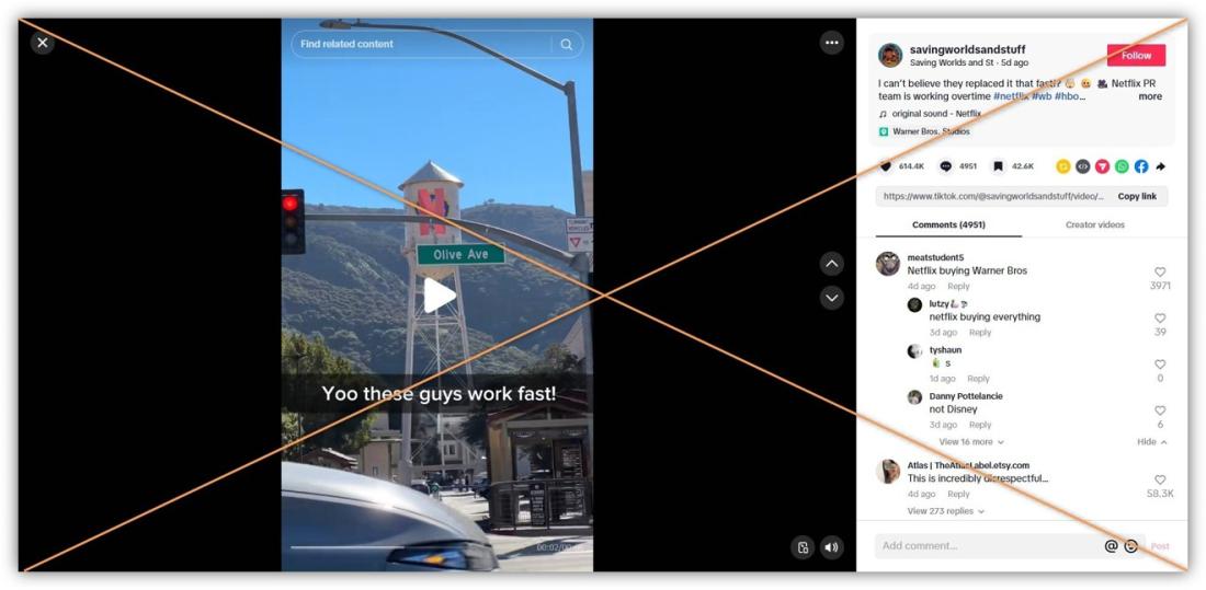 The clip spread after Netflix announced December 5 that it had sealed an agreement to buy the film and television studios from Warner Bros. Discovery, as well as its HBO Max streaming operation (archived here). Three days later, Paramount countered with a hostile, all-cash tender offer to acquire Warner Bros. Discovery in its entirety, including CNN and other cable news properties that would be spun off under the Netflix deal.