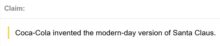 The persistent rumor isn't true. Coca-Cola can — and does — take credit for helping to popularize the modern image of Santa, but the depiction of a round old man clad in red and white predates the company's iconic 1930s advertisements.