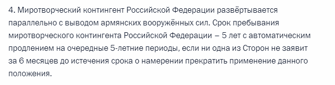 С сожалением отмечаем, что в соответствии с пунктом 4 данного заявления до сих пор не выполнен полный вывод остатков армянской армии и незаконных армянских вооруженных формирований с территории Азербайджана. Нарушает положения заявления Армения, а не Азербайджан.