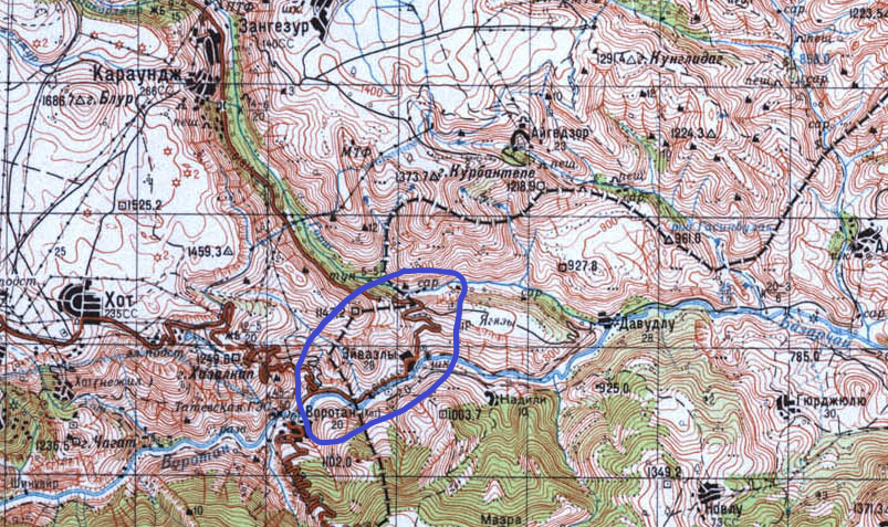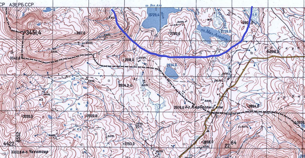 На топографической карте 1970-х годов ясно видно, что часть Гарагеля относится к Азербайджану. Данные GPS это подтверждают.