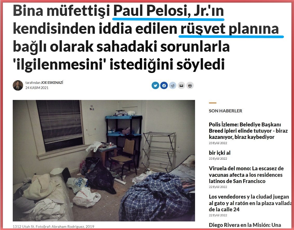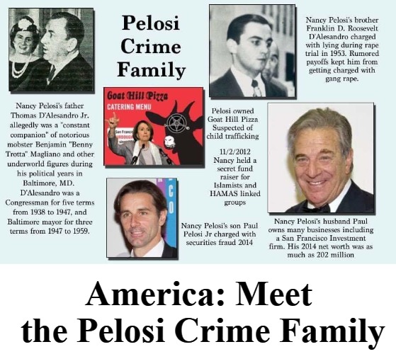 Имя сына спикера, Пола, управляющего семейным бизнесом , стало довольно нарицательным в США в делах о грязном бизнесе, финансовых махинациях, банковских махинациях и коррупции. Пол — единственный сын в семье Пелоси. У него «богатый опыт» в сфере недвижимости, банковского дела и различных предпринимательских сферах. За последние 15 лет Пол Пелоси-мл. был замешан в различных махинациях, работая на различных руководящих должностях в крупных компаниях и корпорациях, и смог установить тесные связи с членами транснациональной преступной сети. Почти все, кто с ним работал, были привлечены к уголовной ответственности и арестованы, но Пола так и не привлекли к суду и не обвинили, несмотря на большое количество экономических преступлений и финансовых махинаций. ( Источник)